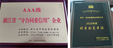 浙江省“守合同重信用”AAA级企业,优秀会员单位